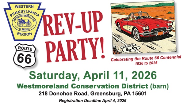 Western PA Region, AACA Wednesday, March 18, 2026 Wednesday, March 18 - American Legion Post 982 at 7:00 p.m.